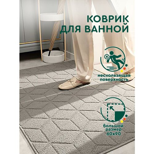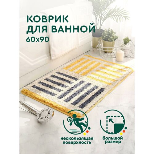 Коврик для ванной 60х90 см, серо-желтый, полосы, противоскользящий