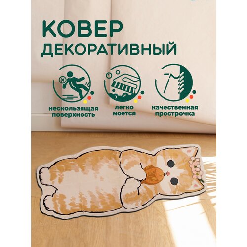 Коврик прикроватный в детскую 50х120 см, кошка с рыбкой, противоскользящий декоративный