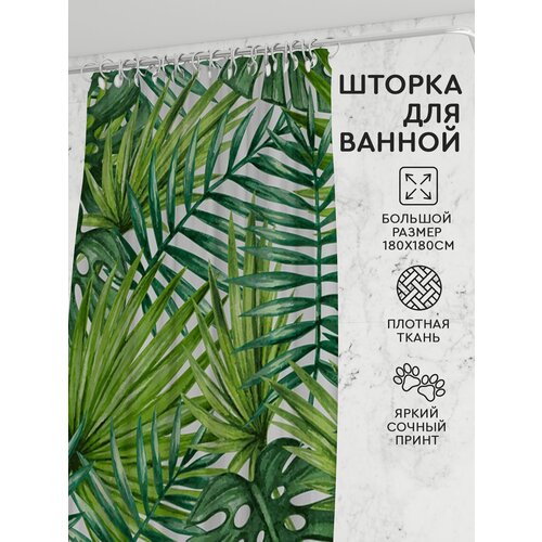 Штора для ванной (180х180 см, папоротник) Hans&Helma с кольцами и люверсами полиэстер водоотталкивающая с рисунком принт занавеска ширма душ баня