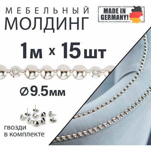 Комплект мебельных молдингов (15шт. по 1м + гвозди), d 9.5 мм, для перетяжки и декора, металлические, 100 1/3, никель