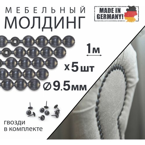 Комплект мебельных молдингов (5шт. по 1м + гвозди), d 9.5 мм, для перетяжки и декора, металлические, 100 1/3, антик