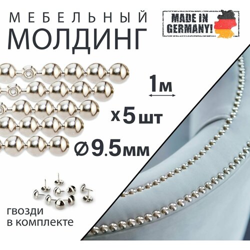 Комплект мебельных молдингов (5шт. по 1м + гвозди), d 9.5 мм, для перетяжки и декора, металлические, 100 1/3, никель
