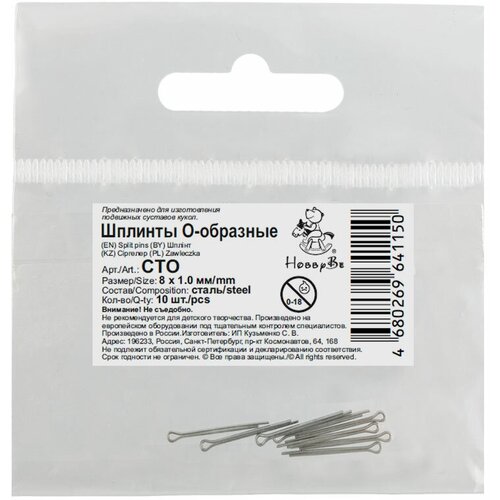 HobbyBe CTO Шплинты стальные 8 x 1.0 мм 10 шт. О-образные