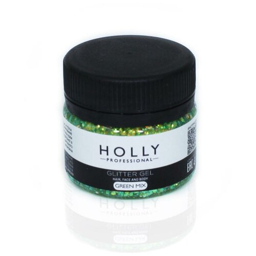 Декоративный гель для волос, лица и тела GLITTER GEL Holly Professional, Green Mix, 20 мл