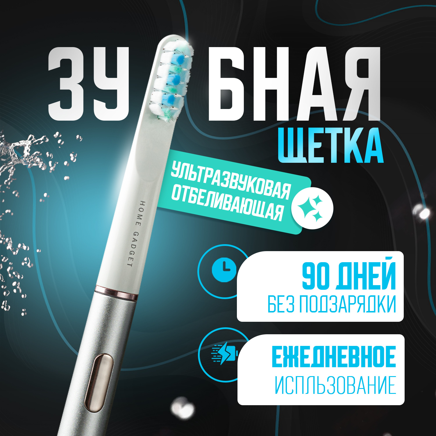 Зубная щетка Home Gadget электрическая ультразвуковая отбеливающая тёмно-серая