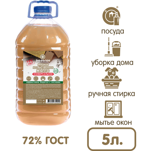 Хозяйственное мыло Inseense жидкое хозяйственное универсальное 72%, без отдушки, 5 кг