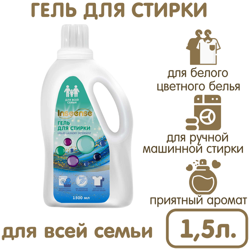 Гель для стирки Inseense Гель для стирки для всей семьи, 15 кг, 1.5 л, универсальное, для синтетических тканей
