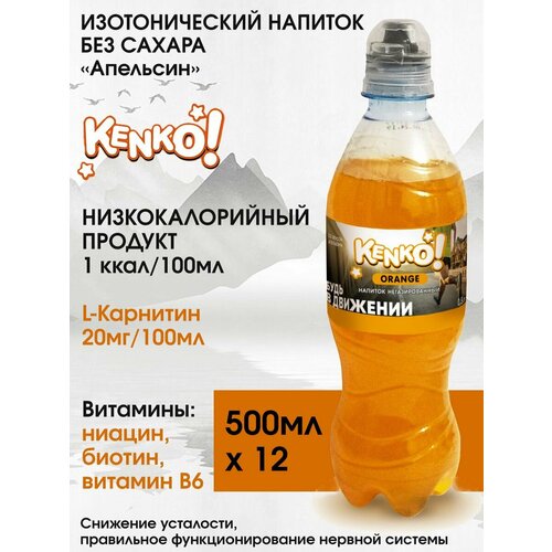 Напиток без сахара "Kenko!" со вкусом апельсина, 12 бутылок по 500 мл