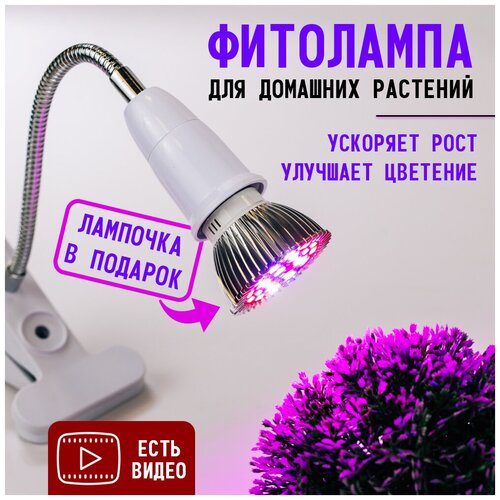 Фитосветильник на прищепке для растений, цветов, орхидей, кактусов, фитолампочка светодиодная полного спектра4 Вт в подарок