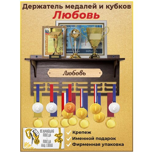 Медальница именная с полкой для кубков с именем Татьяна, дуб