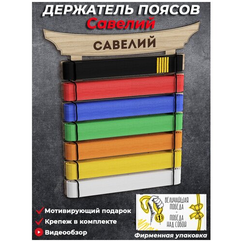 Медальница Держатель поясов кимоно для единоборств (карате, тхэквандо, самбо, дзюдо) с именем Савелий