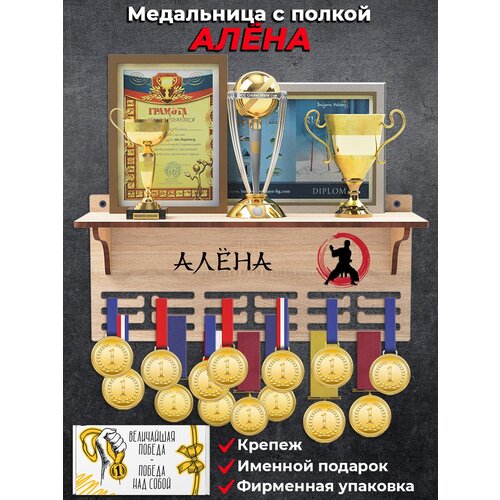 Медальница с полкой дзюдо каратэ тхэквондо именная Алёна