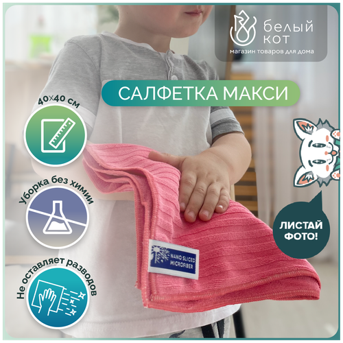 Салфетка для уборки, тряпка для стекол универсальная "Макси" 40х40 см, розовая - магазин Белый Кот