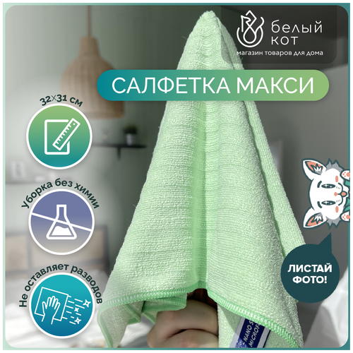 Салфетка Универсальная Макси 32х31 см, светло-зеленая - магазин Белый Кот