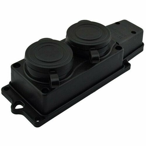 Колодка штепсельная NE-AD 2 гнезда 16А IP54 с крышкой с/з каучук черный