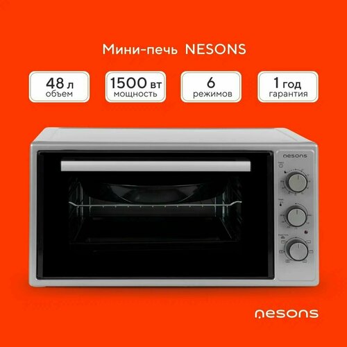 Мини-печь Nesons МО-48CG 1500Вт, 6 режимов, 48л, гриль, серебристая