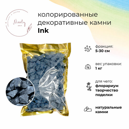 Колорированные камни для декора NICELY Ink, 1 кг, 5-30 мм, для творчества и поделок, для флорариума, декоративный грунт