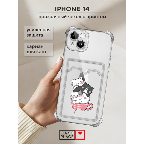 Чехол на Apple iPhone 14 (Айфон 14) с картой и принтом Коты в чашке