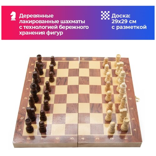 Шахматы среднего размера 39х39 см из натурального дерева с лакированными фигурами с технологией бережного хранения