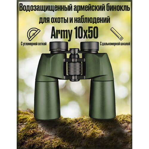 Водозащищенный армейский бинокль с угломерной сеткой и дальномерной шкалой для охоты и наблюдений Army 10x50