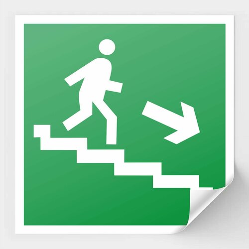 Наклейка Направление к эвакуационному выходу по лестнице вниз 15х15 см, знак E13 ГОСТ