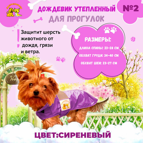 Дождевик для собак Доброзверики, №2, утепленный, (длина спины 23-28 см) Пелигрин