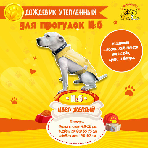 Дождевик для собак Доброзверики, №5, утепленный, желтый (длина спины 40-48 см) Пелигрин