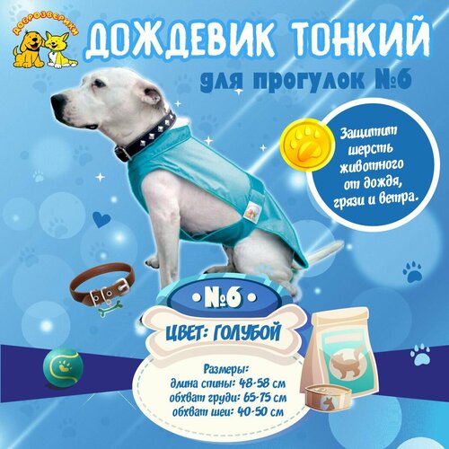 Дождевик для собак Доброзверики, №6, тонкий, (длина спины 48-58 см) Пелигрин