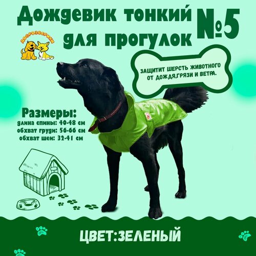 Дождевик для собак Доброзверики, №5, тонкий, зеленый (длина спины 40-48 см) Пелигрин