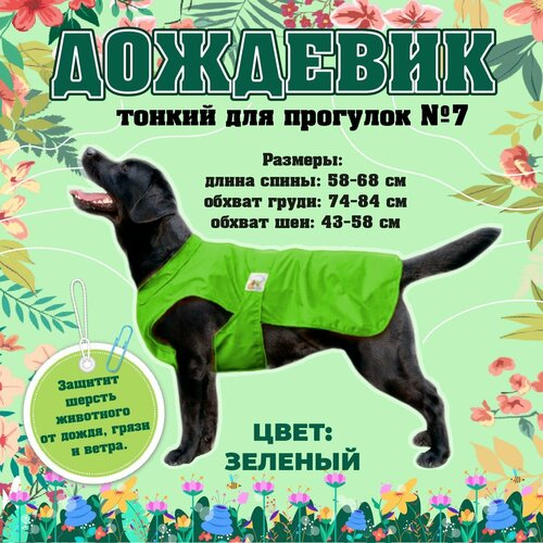 Дождевик для собак Доброзверики, №7, тонкий, зеленый (длина спины 48-68 см) Пелигрин