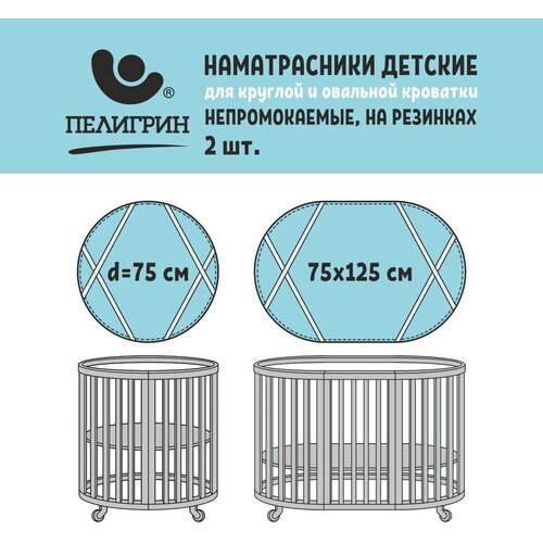 Наматрасник защитный для детской кровати Пелигрин непромокаемый махровый, круглый и овальный 2 шт. (75х75 см и 75х125 см)