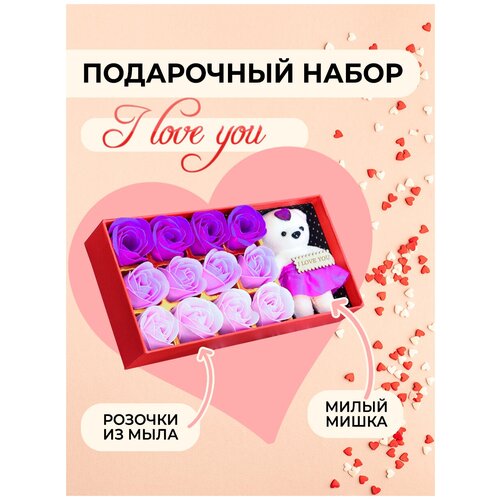 Подарочный набор Postmart "I Love You" c мыльными розочками ц.фиолетовый 3шт. Мыло косметическое