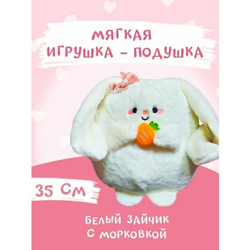 Мягкая игрушка-подушка "Зайка-обнимайка с морковкой" 35 см