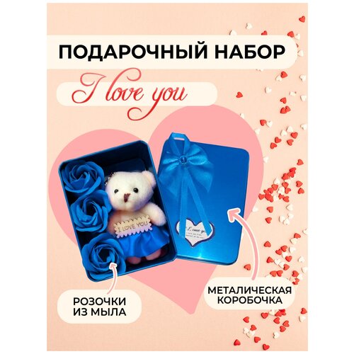 Подарочный набор Postmart "I Love You" c мыльными розочками ц.синий 3 шт Мыло косметическое