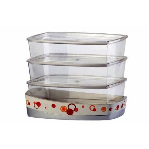 Набор контейнеров на подставке Primanova D-14471-S серия RUBY цвет прозрачный кол-во 4 шт, материал полимер, размер 125x125x45 мм