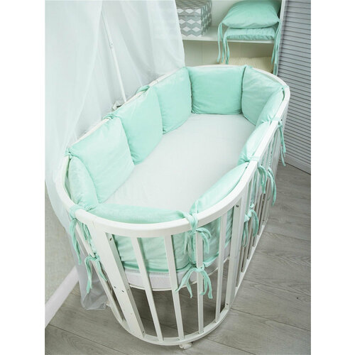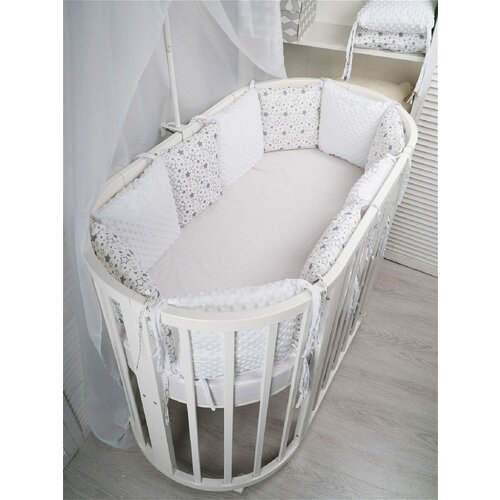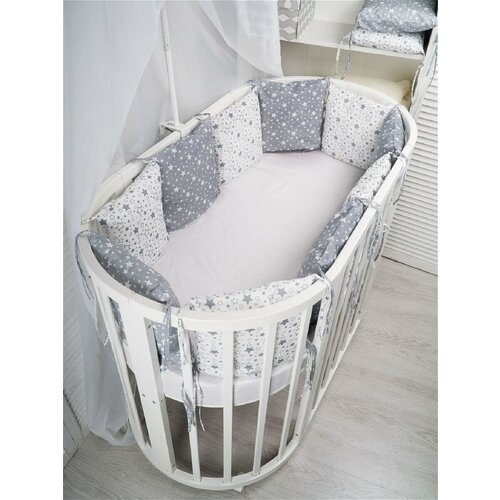 Бортики в детскую кроватку / со съёмными чехлами / Комплект бортиков в кроватку 12 шт