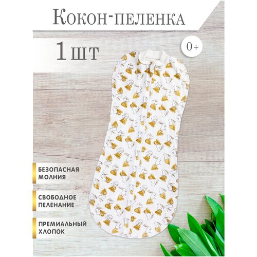 Пелёнка кокон / Кокон пеленка / Пеленка на молнии c зайчиками 62-68 от 1 до 2, 3 месяцев