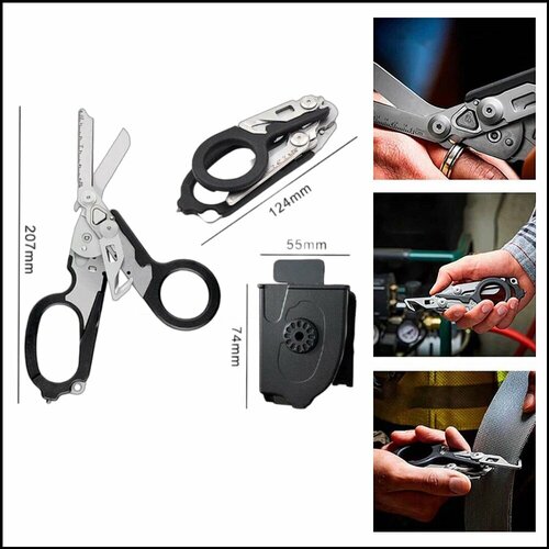 (3шт) Raptor ножницы-мультитул тактические (черные) с чехлом/стальные/по металлу/прочные/стеклобой/складные/карманные/туристические/походные