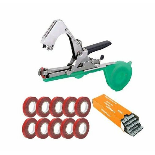 Степлер садовый для подвязки растений / Тапенер для сада и огорода, 11 лент и 10000 скоб в комплекте