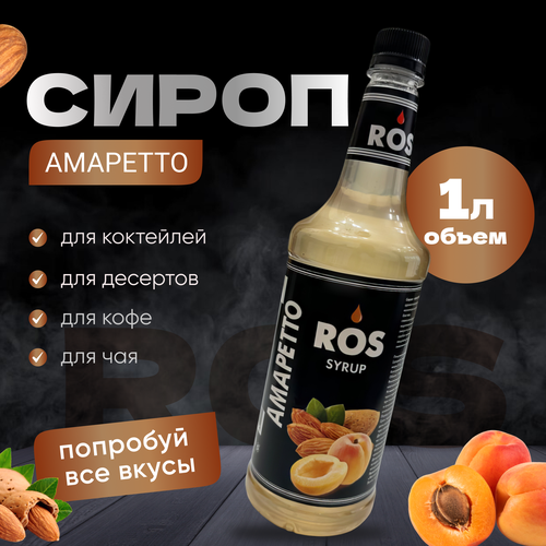 Сироп ROS 1л. Амаретто/ Сироп для кофе, чая, коктейлей, десертов и чая