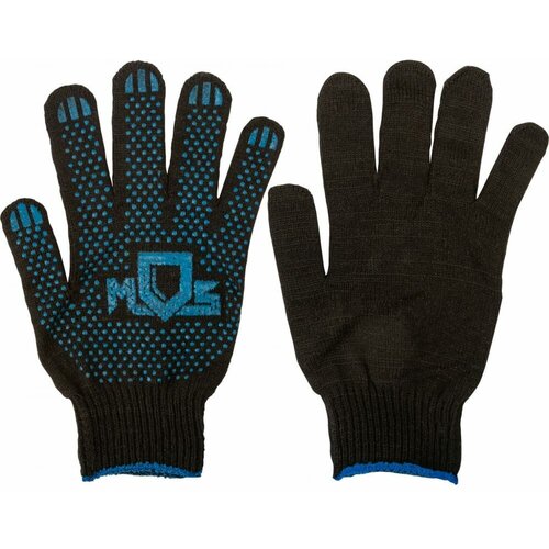 Вязаные утепленные перчатки РОС черные, х/б с ПВХ 12497