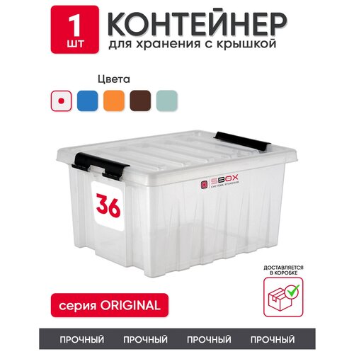 Контейнер пластиковый с крышкой прозрачный на защелках для хранение продуктов, вещей или игрушек, 36 л, SBOX