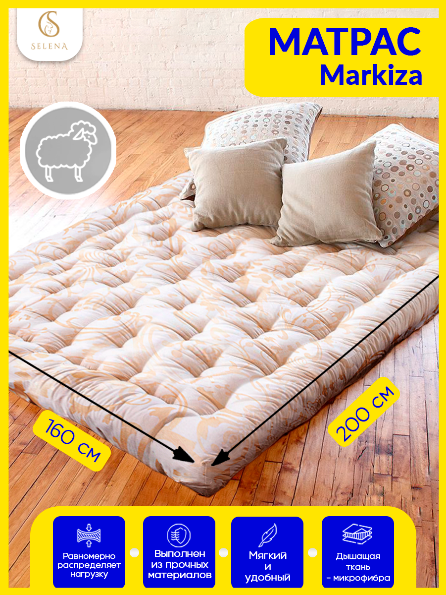 Матрас Selena "Маркиза" 90х200 см (шерсть, полисатин)
