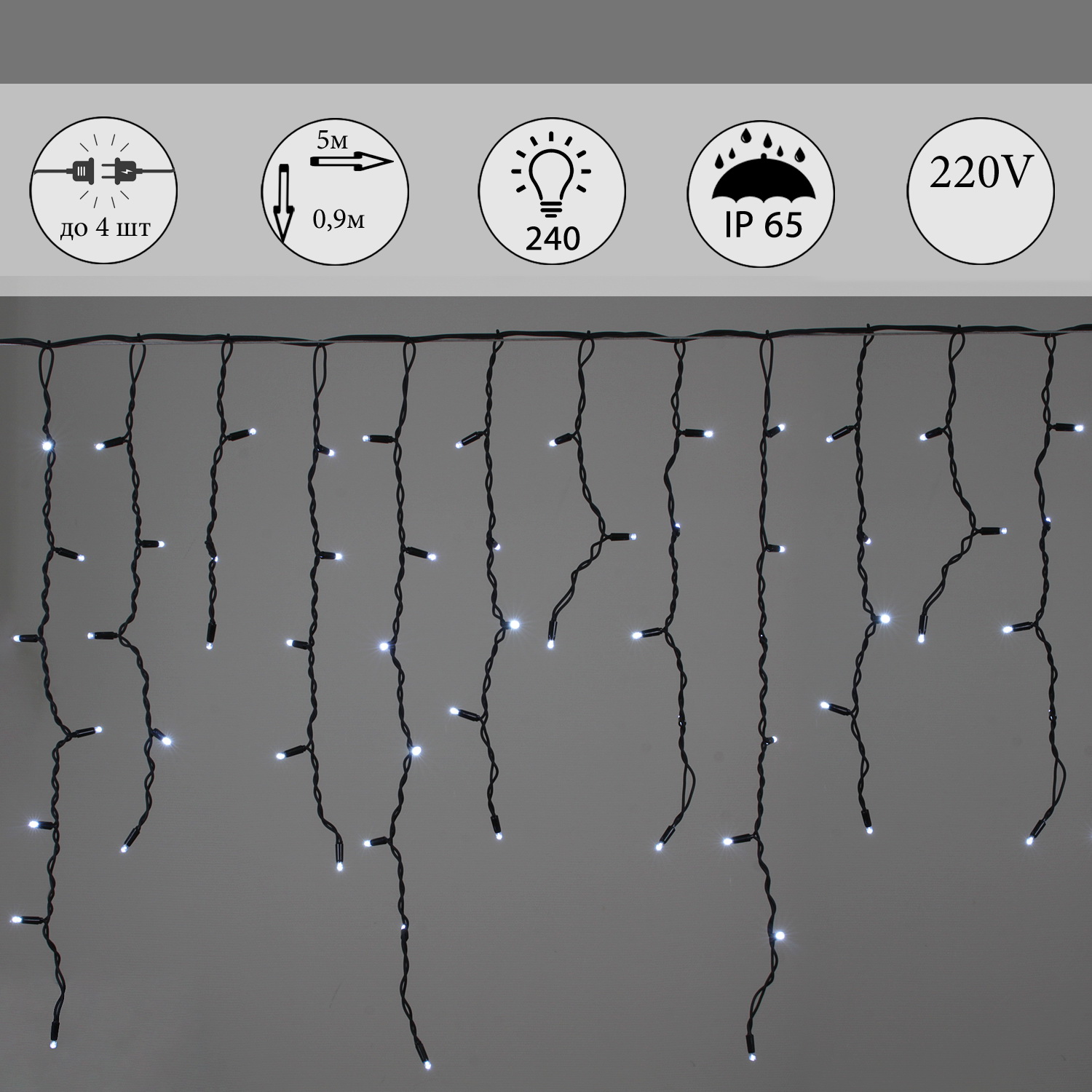 A-056AR WT светодиодная гирлянда бахрома 5x0.6м 180LED черный провод влагозащищен. Sneha 100042629276