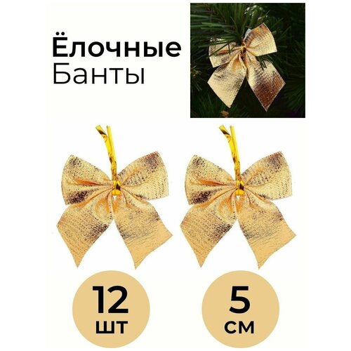 Набор новогодних украшений Елочные Бантики золотые 12 шт / Бант для елки