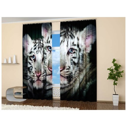 StickButik Белые Тигры (Крепление: Шторная лента, Материал Шторы: Сатин, Высота: 260, Шири 100040257603