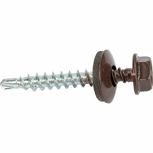 Саморез "Стройбат", кровельный с буром, 4,8х35, цвет: темно-коричневый, 60 шт