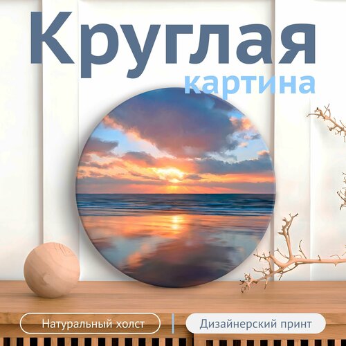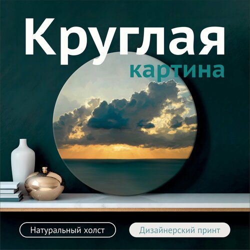 Круглая картина на хлопковом холсте "Закат под облаками" 60х60 см. на стену / для интерьера (ECO - печать)