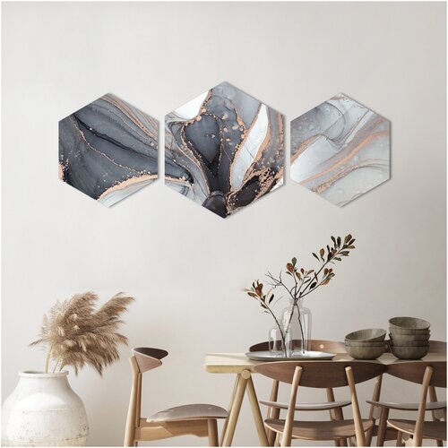 Шестиугольные картины на холсте "Свечение" - 3 шт. / интерьерная картина на стену / настоящий холст (ECO - печать)