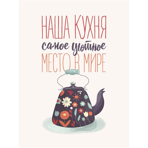 Постер на кухню "Наша кухня - самое уютное место в мире" / 40х50 см. / картина на кухню / на стену / в подарок (эко-печать)